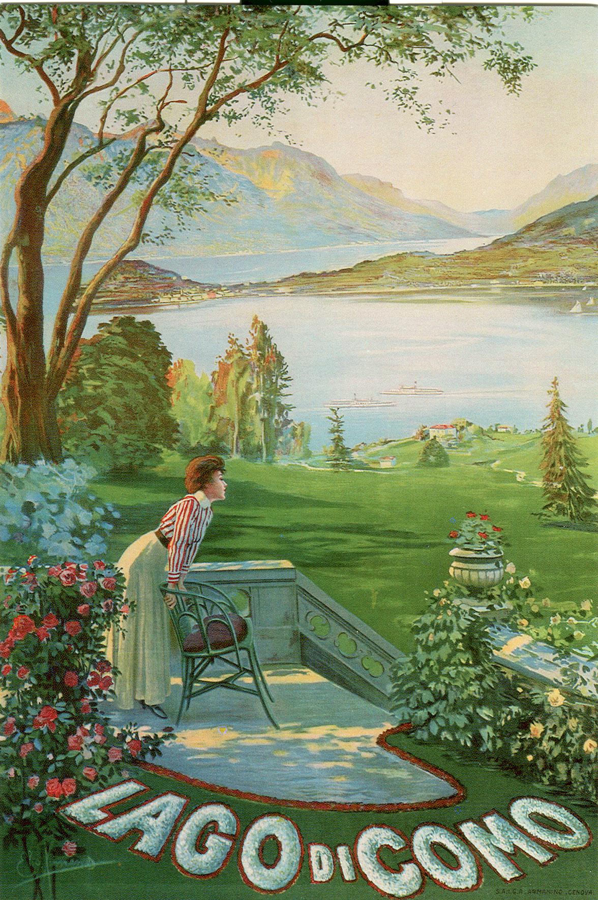 Riproduzione su legno di cm.27 per cm. 40 (spessore mm.8) raffigurante uno splendido poster turistico del Lago di Como.