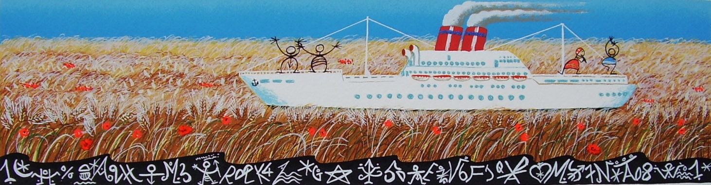 E’ forse possibile far risalire a questo periodo l’amore dell’artista per il volo. E’ questa sua attività che trasforma la tematica dei pesci eucaristici in pesci “aquiloni” e “arche salvatrici”, molto frequenti nella produzione futura dell’artista. Forse una sorta di “navigazione platonica”, quella che porta alla continua ricerca della verità.