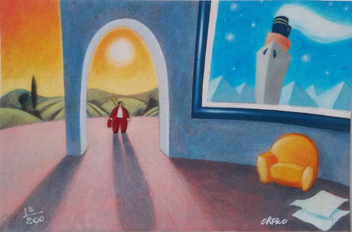 E allora inizia il viaggio fra le sue architetture improbabili ma presenti e panorami surreali ma reali, che esplorano i vari aspetti della nostra vita attraverso la fantasia.