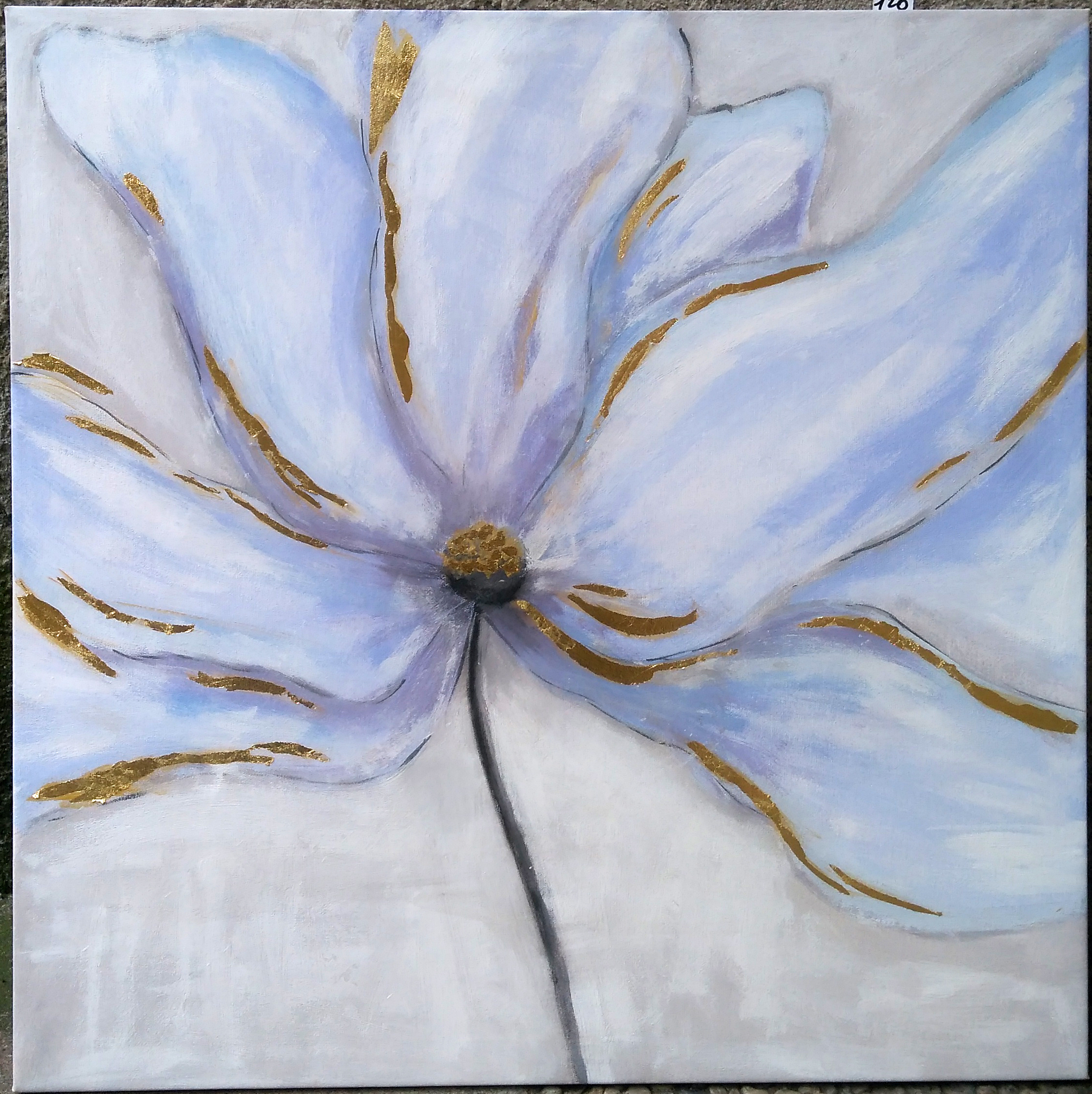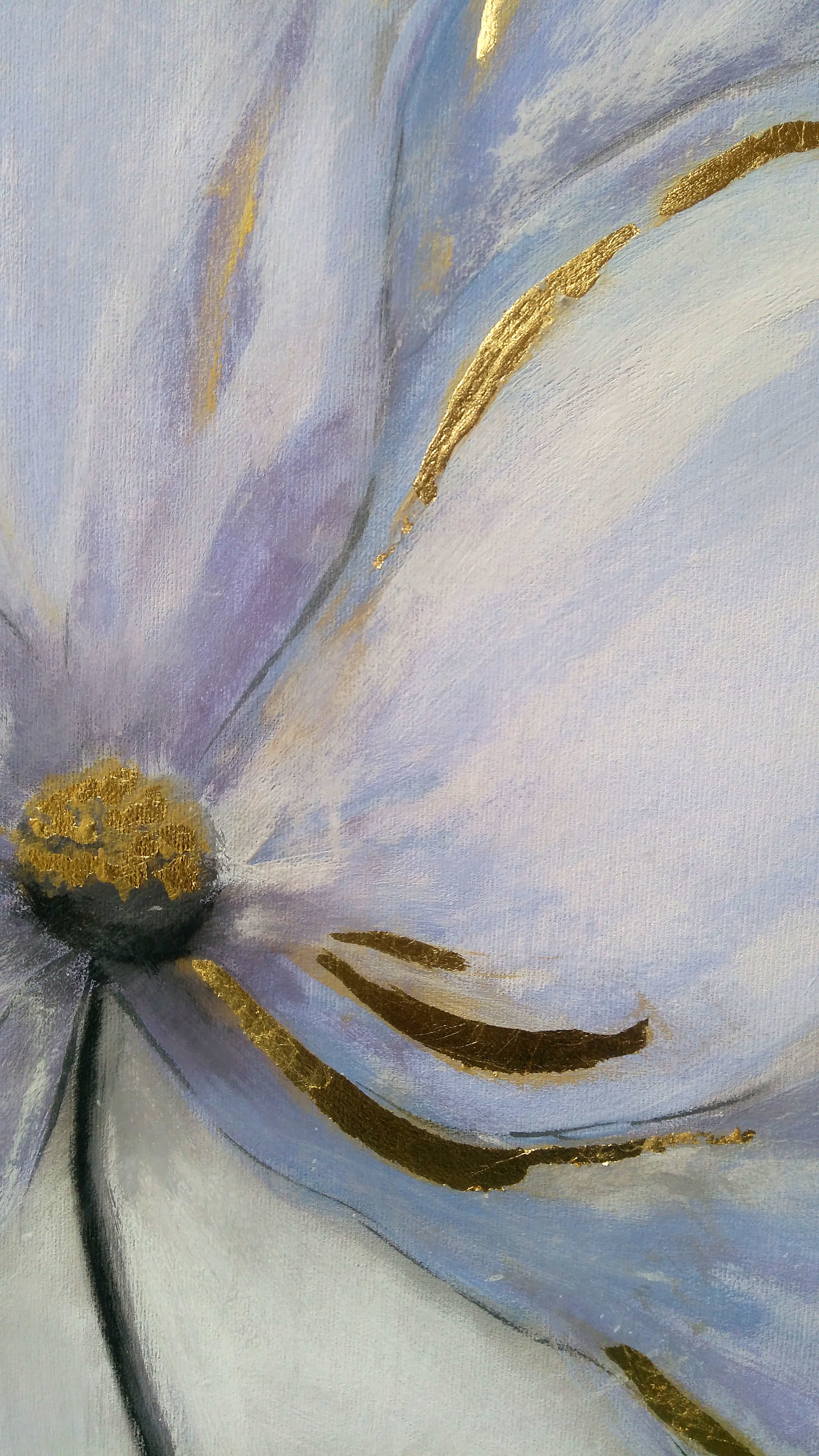 Dipinto ad acrilico su tela con interventi in foglia oro