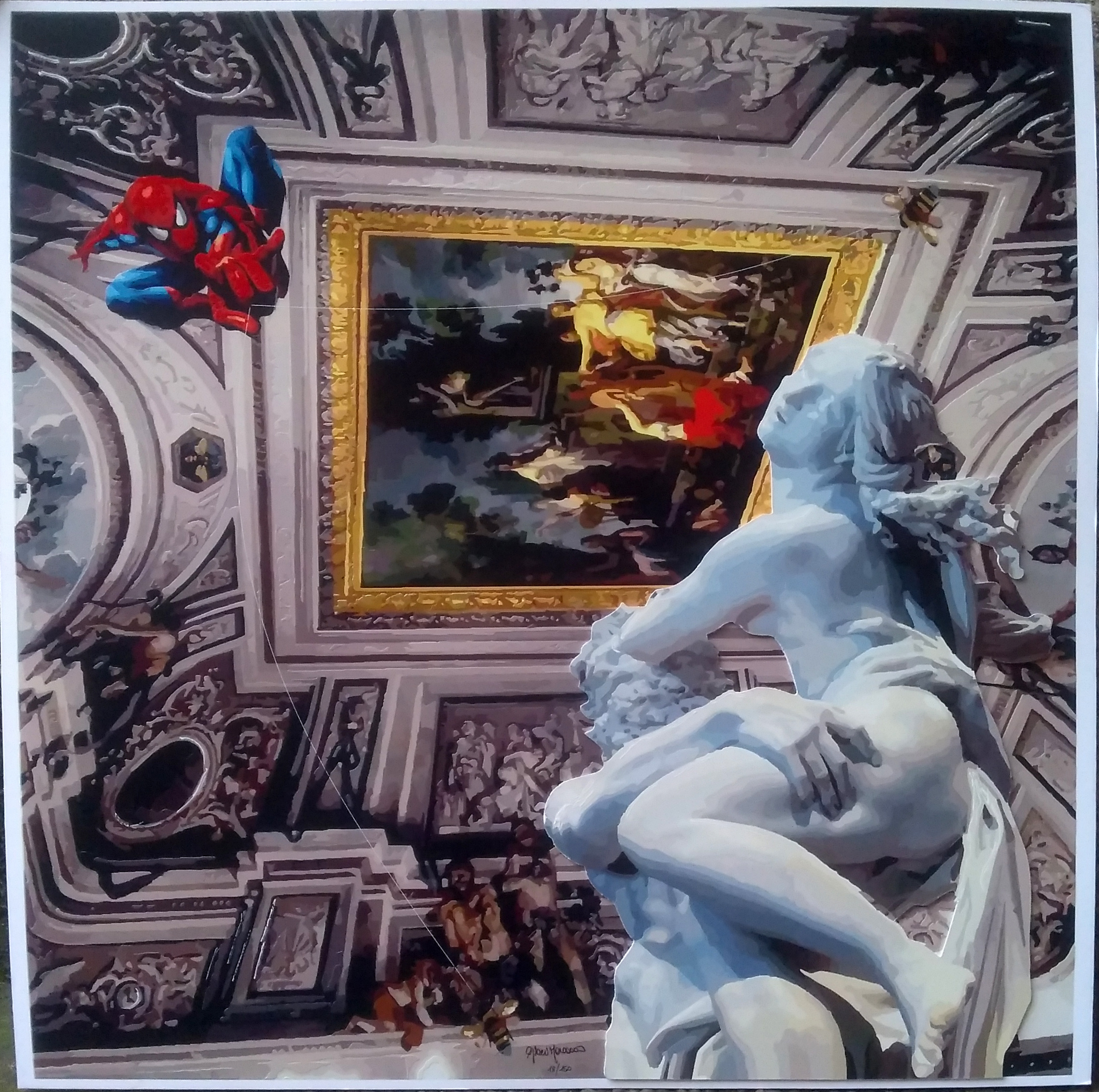 Serigrafia polimaterica con fine art gicleè con retouchè su cartone vegetale