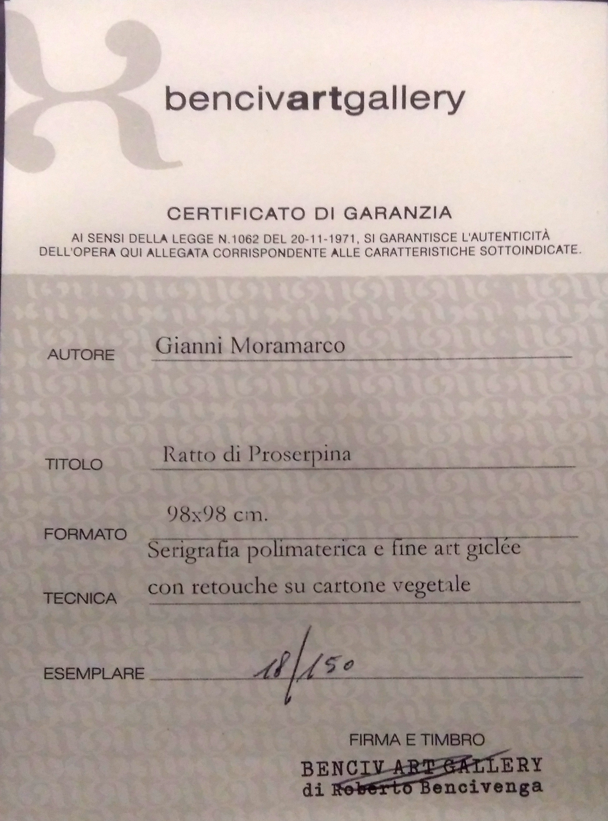 Tiratura : 150 esemplare N° 18